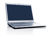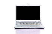 nowoczesny laptop na białym tle z odbicia na stół szkło.