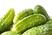 świeże organiczne ogórki z ziołami na drewnianym stole