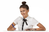 Zdjęcie "młoda kobieta w okularach siedzący przy stole notatek w dokumentach. Seria nowoczesnych, przestronnych biuro." może być wykorzystywane do celów osobistych i komercyjnych zgodnie z warunkami zakupionej licencji Royalty-free. Obraz jest dostępny do pobrania w jakości wysokiej rozdzielczości do 5760x3840.