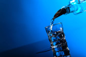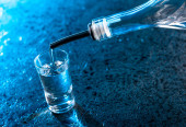 butelka wódki leżącego szkła z niebieskim podświetleniem