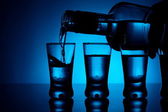 butelka wódki z wielu okulary z niebieskim podświetleniem