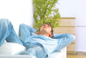 młody biznes zrelaksowany człowiek z rękami za głowę w pracy