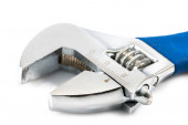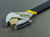Regulowany klucz z bliska. Narzędzia ręczne metalowe.