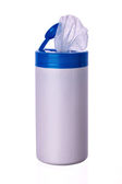 pomarańczowy butelka z tworzywa sztucznego na jasnym tle