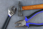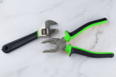 Regulowany klucz z bliska. Narzędzia ręczne metalowe.