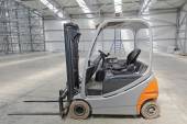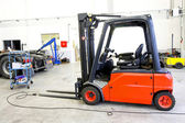 Tonu niebieski paleta podnośnik w wielkim magazynie