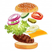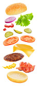 Zdjęcie "latający składników Hamburger na białym tle" może być wykorzystywane do celów osobistych i komercyjnych zgodnie z warunkami zakupionej licencji Royalty-free. Obraz jest dostępny do pobrania w jakości wysokiej rozdzielczości do 5760x3840.
