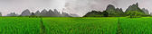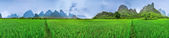 Yangshuo 360 stopień parorama ricefields, Kras góra lagunowe oraz ogród
