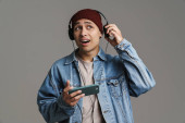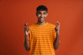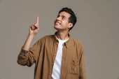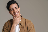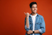 Zdjęcie "Brunetka latynoski mężczyzna w koszuli gestykulując i uśmiechając się do kamery izolowane na czerwonym tle" może być wykorzystywane do celów osobistych i komercyjnych zgodnie z warunkami zakupionej licencji Royalty-free. Obraz jest dostępny do pobrania w jakości wysokiej rozdzielczości do 5760x3840.