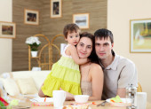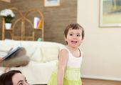 młoda matka zabawy z jej synka w domu na podłodze