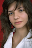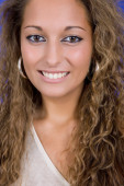 Młoda atrakcyjna kobieta uśmiechnięta, na białym tle