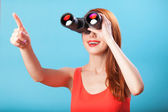 rude dziewczyny z lornetki na niebieskim tle.