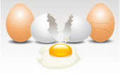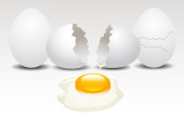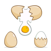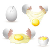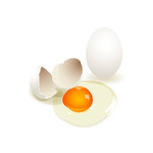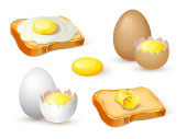 brązowy skład jaj kurzych izolowany na białym. świeże całe i rozbite jajko z surowym żółtkiem i białkiem. pęknięte jajko z żółtkiem na śniadanie. realistyczna ilustracja. clipart do projektowania