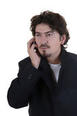 młody człowiek w telefonie w tle