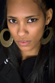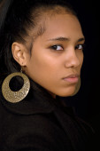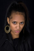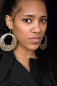 Młoda, piękna kobieta z bliska portret, na czarnym tle