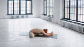Zdjęcie "Sportowa boso pani w dresie siedzi na macie w pozycji lotosu z namaste mudra medytując w przestronnym studio" może być wykorzystywane do celów osobistych i komercyjnych zgodnie z warunkami zakupionej licencji Royalty-free. Obraz jest dostępny do pobrania w jakości wysokiej rozdzielczości do 5760x3840.