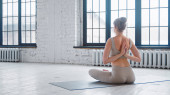 Zdjęcie "Skoncentrowana młoda kobieta w wygodnym dresie medytuje z namaste mudra na treningu w przestronnym studio jogi z bliskim widokiem" może być wykorzystywane do celów osobistych i komercyjnych zgodnie z warunkami zakupionej licencji Royalty-free. Obraz jest dostępny do pobrania w jakości wysokiej rozdzielczości do 5760x3840.