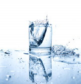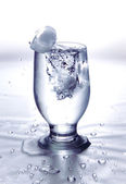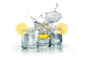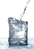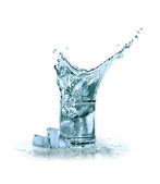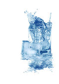 kilka kieliszków zimną wodą w pobliżu kostek lodu na białym tle biały ze ścieżką przycinającą