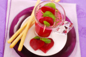 Zupa z buraków z kremem (barszcz czerwony) w szkło zdobione serce plastry
