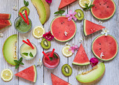 Zdjęcie "Świeże owoce tropikalne i jagody na jasnym, słonecznym stole, naturalna i zdrowa koncepcja odżywiania, źródło witamin i przeciwutleniaczy, składniki na zdrowe śniadanie, dieta detoksykacyjna" może być wykorzystywane do celów osobistych i komercyjnych zgodnie z warunkami zakupionej licencji Royalty-free. Obraz jest dostępny do pobrania w jakości wysokiej rozdzielczości do 5760x3840.