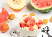 Świeże owoce tropikalne i jagody na jasnym, słonecznym stole, naturalna i zdrowa koncepcja odżywiania, źródło witamin i przeciwutleniaczy, składniki na zdrowe śniadanie, dieta detoksykacyjna i odchudzanie,