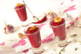 Zupa z buraków ze śmietaną i grissini (barszcz czerwony) w szkło zdobione serce plastry