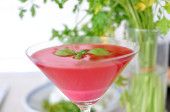 Zupa z buraków ze śmietaną i grissini (barszcz czerwony) w szkło zdobione serce plastry