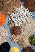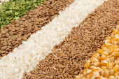 Zbieranie różnych odmian zbóż i suchych nasion jadalnych. Przykłady źródeł włókien