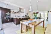 Zdjęcie "Piękny projekt kuchni" może być wykorzystywane do celów osobistych i komercyjnych zgodnie z warunkami zakupionej licencji Royalty-free. Obraz jest dostępny do pobrania w jakości wysokiej rozdzielczości do 5760x3840.