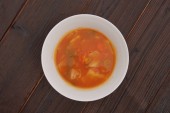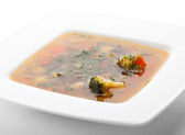 Ocieplenie miskę dyni gulasz na białym na białym tle