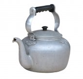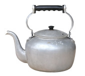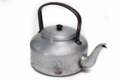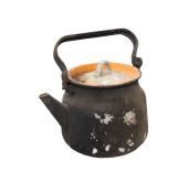 stary czajnik okopcony na białym tle na białym tle