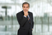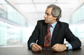 business dojrzały mężczyzna portret myśli w urzędzie