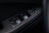 Nowosybirsk, Rosja - 07 lipca 2021: Mercedes-Benz GLA-class, Wnętrze nowoczesnego samochodu. Przyciski drzwi bocznych: okno, przyciski regulacji lusterka, zamek drzwiowy. Samochód w środku.
