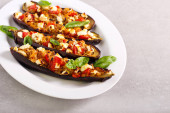 Zdjęcie "bakłażan faszerowany z mięsem, serem i pomidorami" może być wykorzystywane do celów osobistych i komercyjnych zgodnie z warunkami zakupionej licencji Royalty-free. Obraz jest dostępny do pobrania w jakości wysokiej rozdzielczości do 5760x3840.