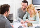 Młoda para oglądania plany w ich nowe mieszkanie