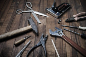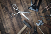 Zdjęcie "Używane narzędzia robocze na drewnianym tle. Widok góry. Układy płaskie." może być wykorzystywane do celów osobistych i komercyjnych zgodnie z warunkami zakupionej licencji Royalty-free. Obraz jest dostępny do pobrania w jakości wysokiej rozdzielczości do 5760x3840.
