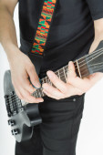 młody człowiek z gitary na białym tle. na