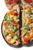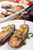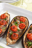 bakłażan faszerowany z mięsa, sera i pomidory z bliska