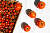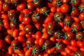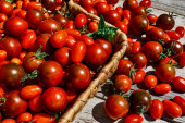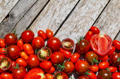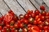 Zdjęcie "Czerwone dojrzałe pomidory tekstury tła. Różne cechy pomidorów na drewnianym stole. Czarne pomidory Solanum lycopersicum." może być wykorzystywane do celów osobistych i komercyjnych zgodnie z warunkami zakupionej licencji Royalty-free. Obraz jest dostępny do pobrania w jakości wysokiej rozdzielczości do 5760x3840.