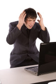 gotowe biznes kaukaski mężczyzna niezadowolony z pracy siedzi