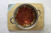 Dodaj cukier i sól. Wlać olej roślinny. Gotować na wolnym ogniu przez 1,5 godziny, mieszając sporadycznie.