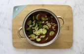 Wlać ocet i dodać posiekany czosnek. Zagotować mieszaninę przez kolejne 10 minut..