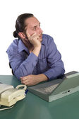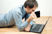 człowiek w garniturze, uzależnionych od Internetu umieścić kabel usb z laptopa compu