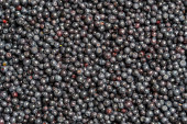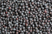 Powierzchnia pokryta warstwą jagód leśnych, z bliska. Jagoda leśna letnia