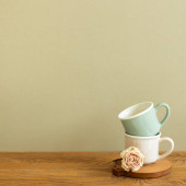 Zdjęcie "Żółty kubek kawy i wazon różowe suche kwiaty na drewnianym stole. miętowe tło ścienne. wnętrze domu" może być wykorzystywane do celów osobistych i komercyjnych zgodnie z warunkami zakupionej licencji Royalty-free. Obraz jest dostępny do pobrania w jakości wysokiej rozdzielczości do 5760x3840.