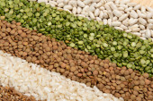 Zbieranie różnych odmian zbóż i suchych nasion jadalnych. Przykłady źródeł włókien