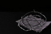 Zdjęcie "Voodoo lalka ze szpilkami otoczony przez przedmioty ceremonialne na czarnym stole, płaski leżak" może być wykorzystywane do celów osobistych i komercyjnych zgodnie z warunkami zakupionej licencji Royalty-free. Obraz jest dostępny do pobrania w jakości wysokiej rozdzielczości do 5760x3840.