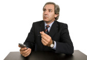 człowiek dojrzały biznes na biurku, na białym tle