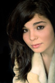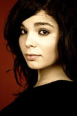 portret młodej kobiety na białym tle na czerwonym tle