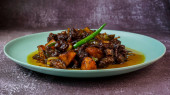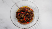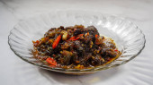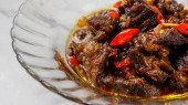 Daging Berlado / berlada lub wołowiny smażone z chili słynnej kuchni w Azji kraju, zwłaszcza Indonezji, Malezji i Tajlandii. Sukulentne mięso z pikantnym i aromatycznym sosem balado.